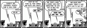 The songwriter of Willie Nelson's “gay cowboy” song was on NPR's What Do You Know this weekend. He's was wryly funny discussing how this song emerged from the Urban Cowboy phase of the early 80's. He also pointed out that Brokeback Mountain is about sheepherders, not cowboys. LOL. So I was waiting for Aaron MacGruder […]