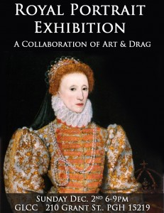 Pittsburgh, PA Dec. 2, 2012- Drag Queens and Kings as Portrayed by Local Pittsburgh Artists.The GLCC proudly presents a collaborative effort between the visual art community and the drag performance community. “Drag” can be understood gender bending or gender illusion entertainment that has the power to question, to liberate, and to push boundaries, much like the power of art.  Art and drag are both concerned with aesthetics and transformation. Visual artists and drag performers operate on the fringe of society, giving them a unique perspective to explore their creativity and expression. Pittsburgh is lucky to have such a rich and talented drag community as well as a talented and rich art community. In this show, Drag Queens and Kings have collaborated with visual artists to create “royal” portraiture.