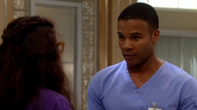 So Felix Dubois is a young black male nurse (or nursing student – that’s unclear). His first scene was a combination of queenish primp and sincerity that I personally found refreshing. Felix had some lovely one liners about long established GH hallowed ground (“Nurses have balls?”) and had absolutely no hesitation about whipping out his lipstick .