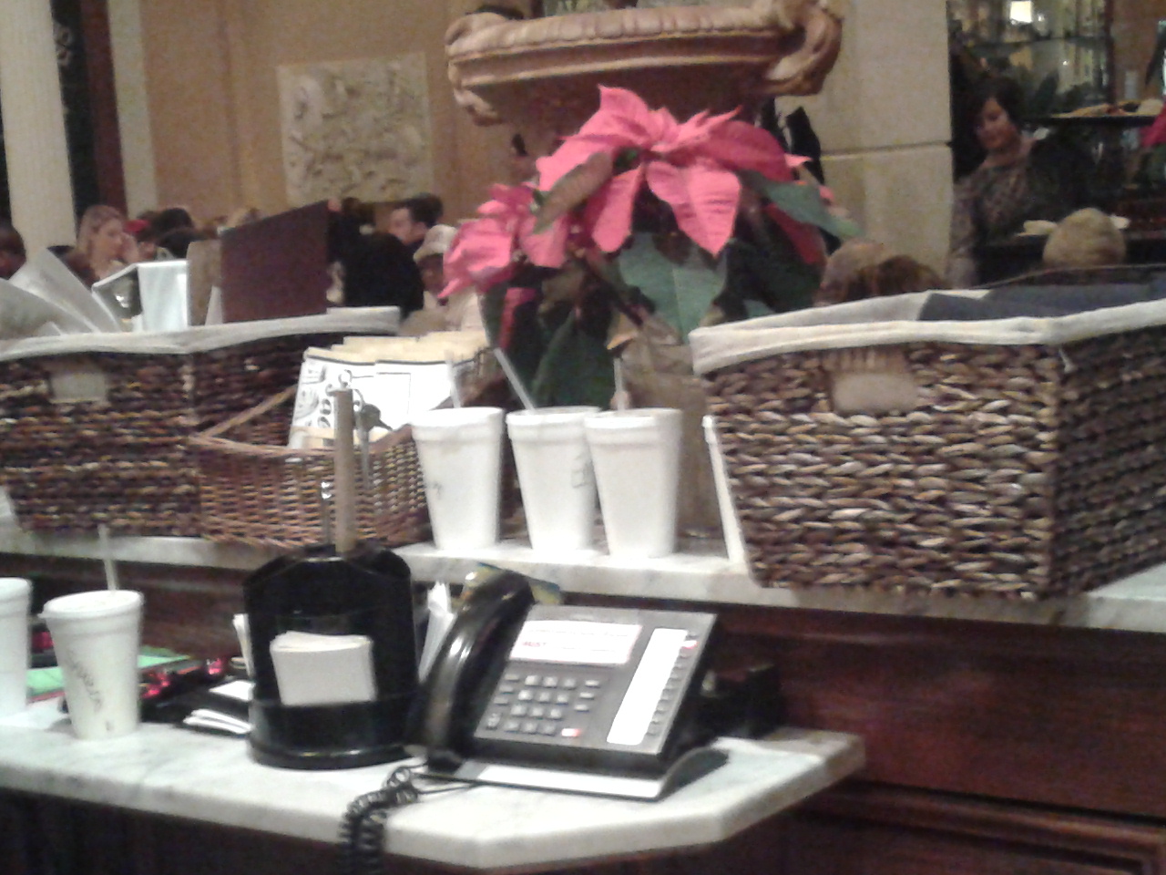 I didn’t really enjoy this restaurant (never have) but this was the straw that broke this camel’s back. I’m paying upwards of $4 to get a salad with my entree and you can’t provide your employees with reusable cups for their beverages? Really? It is nearly 2013 – no excuse. It is not green and it is tacky to boot.
