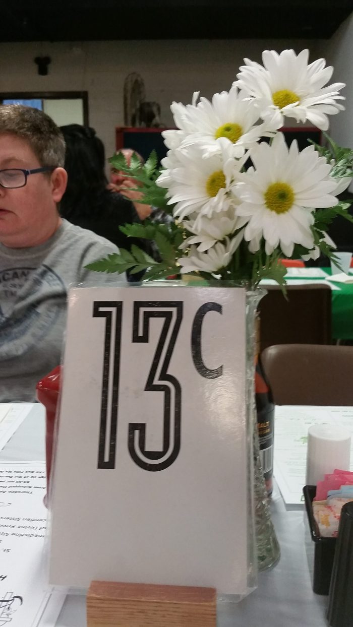 We ended up at table 13 – ha! Again, the servers were super nice and organized and efficient. They made small talk with us. It was mostly adults – I didn’t see youth involved, but I wonder if the availability of alcohol made that impossible? Our tablemates were nice enough, but talked a lot about gum disease which was a bit unappetizing.