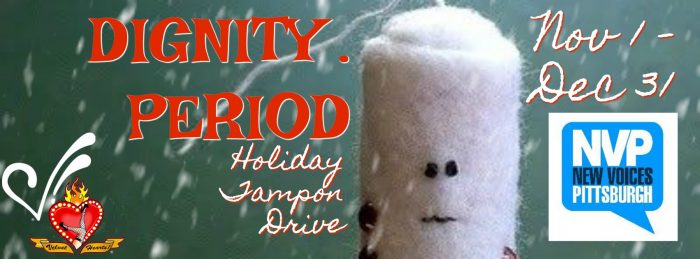 The Velvet Hearts are supporting homeless women and nonbinary neighbors through a product drive for health supplies. Items will be distributed through New Voices Pittsburgh. They plan to collect feminine hygiene products and cold weather necessities. It’s important to help homeless women keep their dignity by having access to clean, safe feminine products.