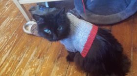 It was a blustery, dark night in December 2002 when I left the domestic violence agency where I was a volunteer. I fumbled for my keys and almost ignored the plaintive sound. A few minutes later, the plaintive soundee was wrapped around my ankles, meowing loudly, and demanding my immediate attention.