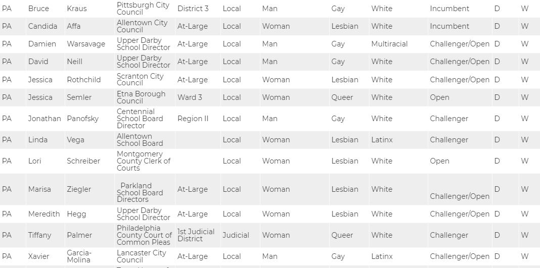 The chart below shows all 13 Pennsylvania winners; click here to see the entire list of 80+ candidates on the Victory Fund website.