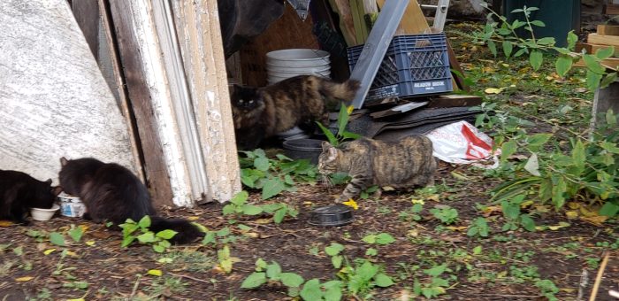 I had caught glimpses of a cat that might be her on trail cam images, but I never saw her in person so I just thought it was wishful thinking. I think about her quite a bit. She didn’t want to live inside. It would have taken a long time to socialize her and there are very few foster slots for long-term work. I hoped she would return to Miss Mary Jane’s house, but we never saw her again. We didn’t begin caretaking for that colony until December 2020, but we did look for her.