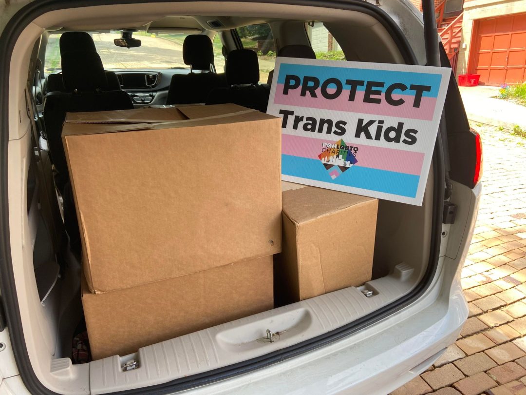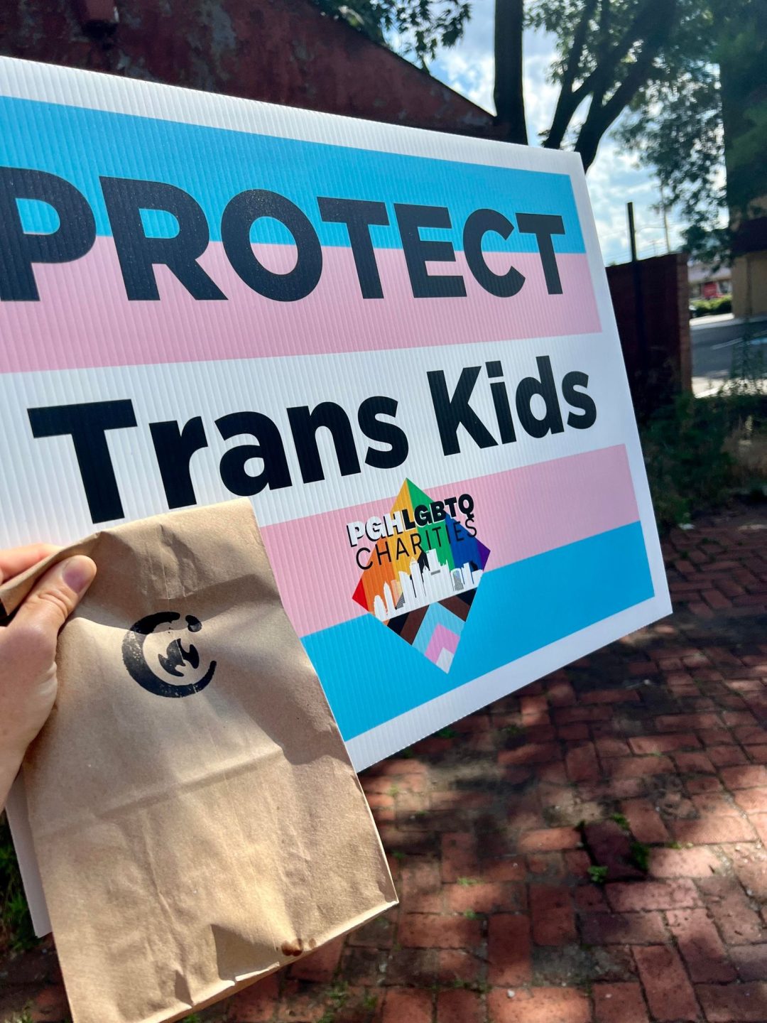 As you may know, Pittsburgh LGBTQ Charities has been working with a local family and their neighbors to distribute yard signs throughout the community. The signs read ‘Protect Trans Kids’ and are intended to send that direct message. The idea was planted in mid-June, the first 50 signs delivered to us on June 24, and here we are 20 days later – we’ve ordered 500 signs total and have requests coming in each day (along with donations.)