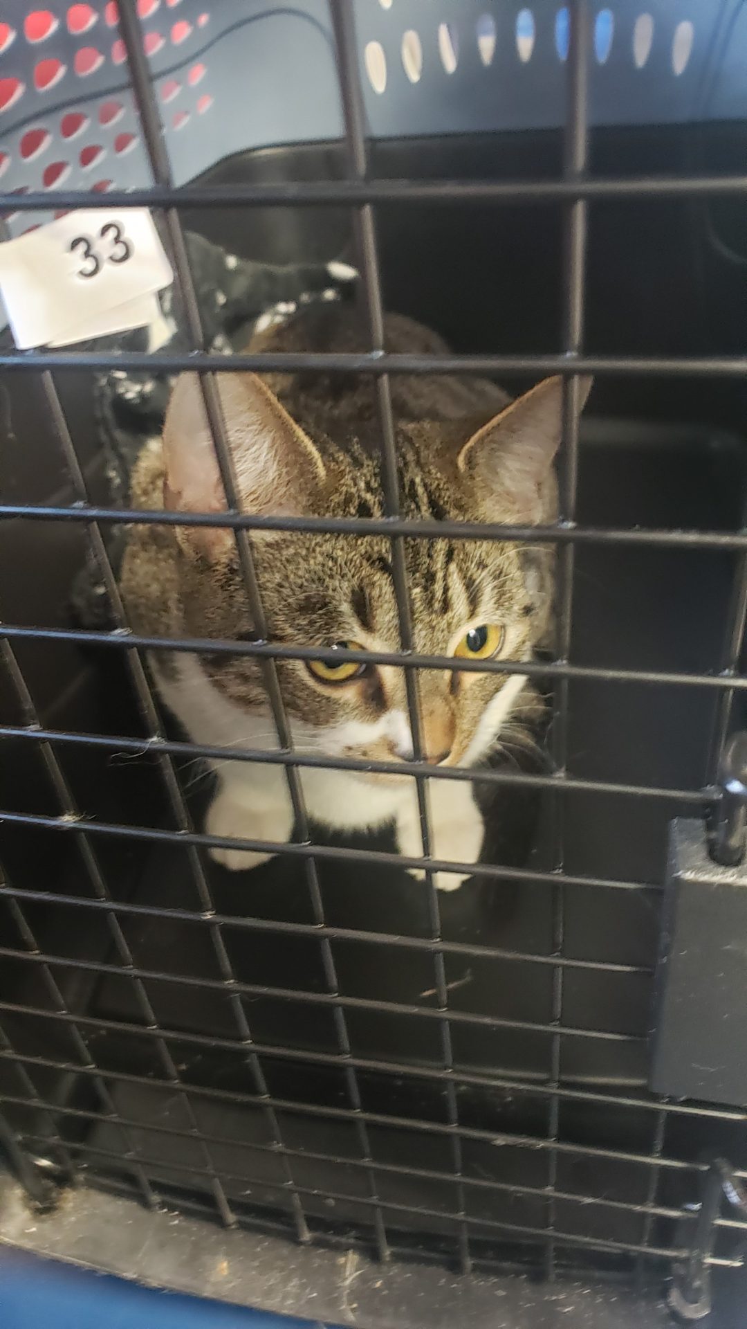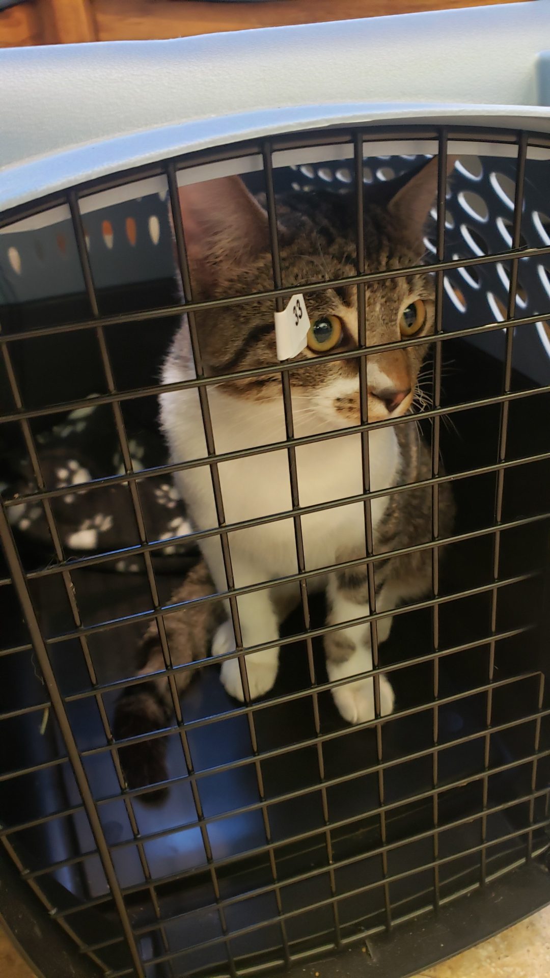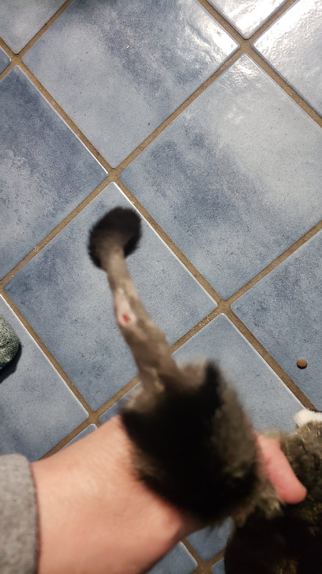 Neighbors brought to us to get scanned. While checking him out, we found an abscess or wound of some type on his tail. We need to get that checked out before anything.