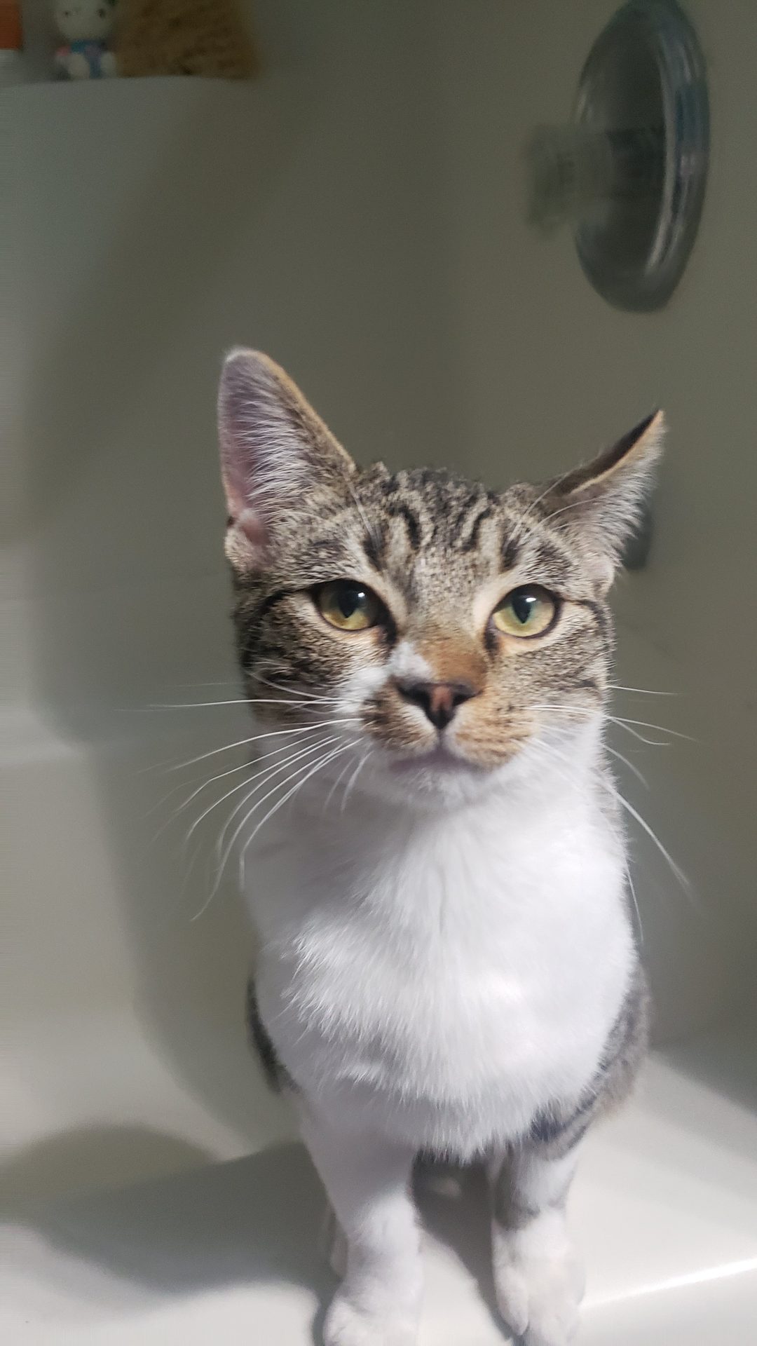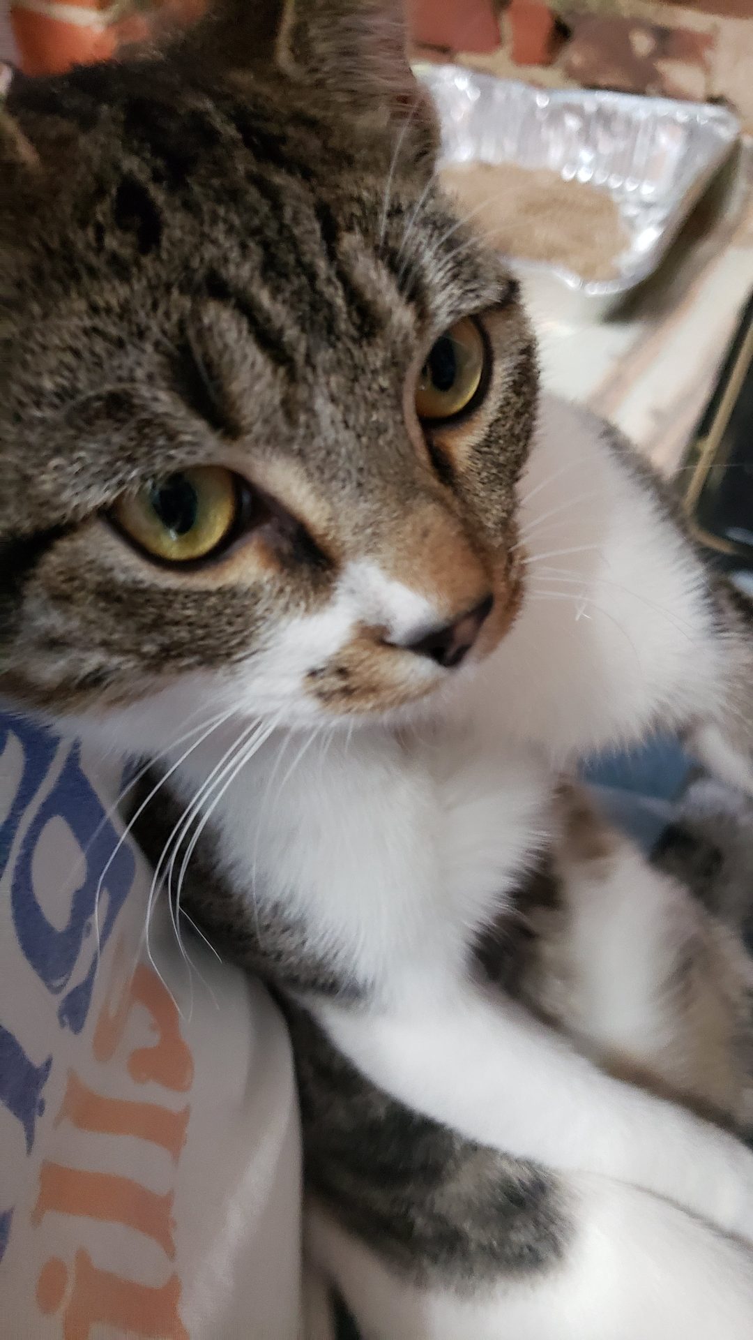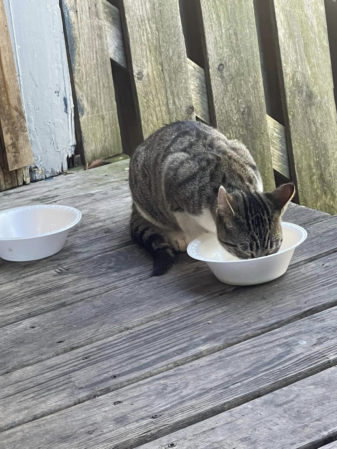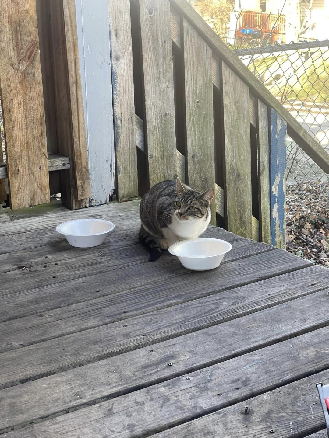 Three days ago, a small little guy showed up on a neighbor’s porch. No ear tip, no collar, super friendly. Unneutered male, probably 3-4 months old.