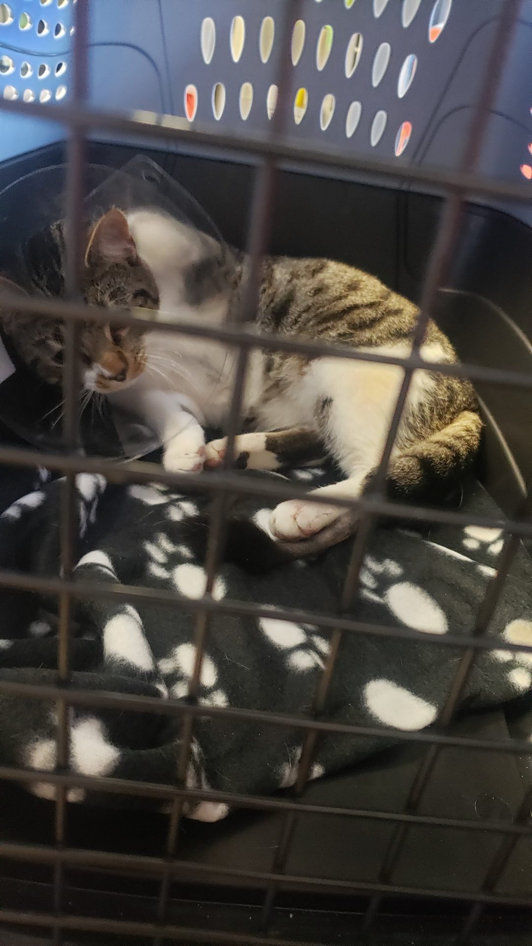 Watch foster mama try to wrangle five month kitten into his cone of shame.