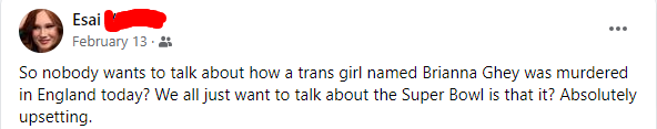 I saw your social media post pointing out that people including your own social friends were more concerned about the Super Bowl than Brianna’s death, how does that resonate with you personally?