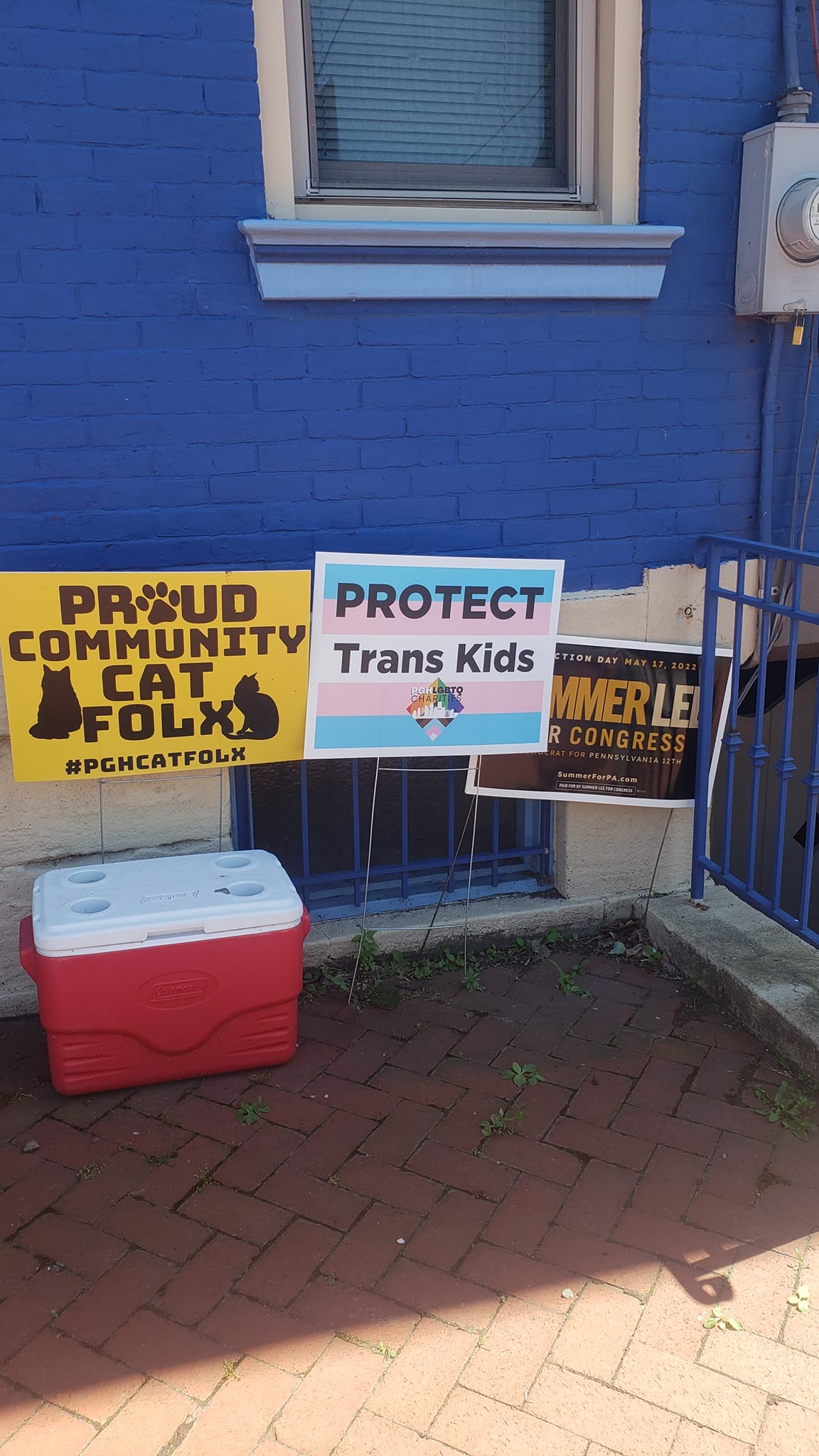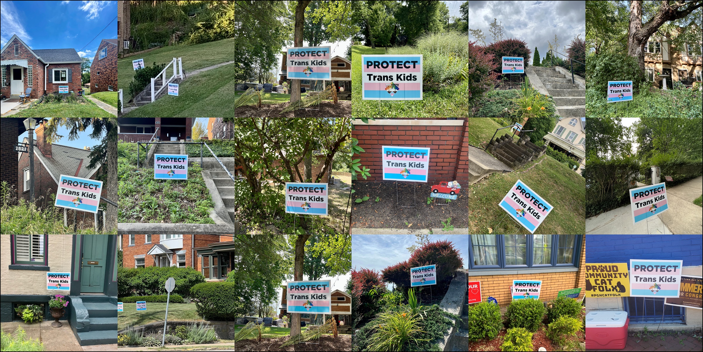 I’m in the middle of a ‘blitz’ crowdfund to put more #ProtectTransKids yard signs out in Pennsylvania. We had reached 1150 signs produced before this began. Now we’ve been able to order another 150 for three different communities. Read more about the project here.
