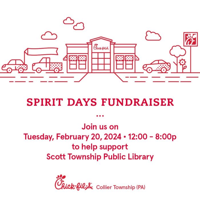 The Scott Township Library is partnering with the Chick-fil-A in Bridgeville for a food fundraiser in February.