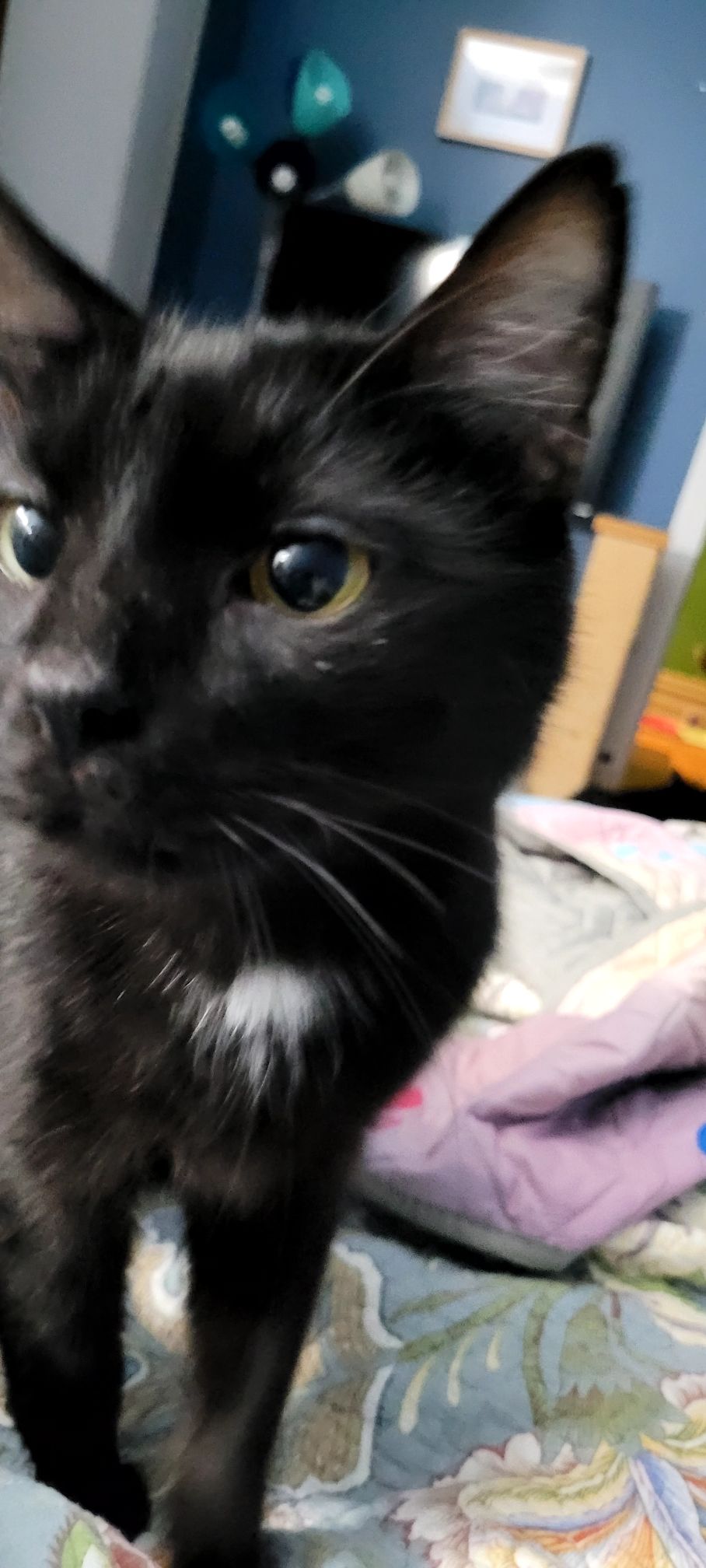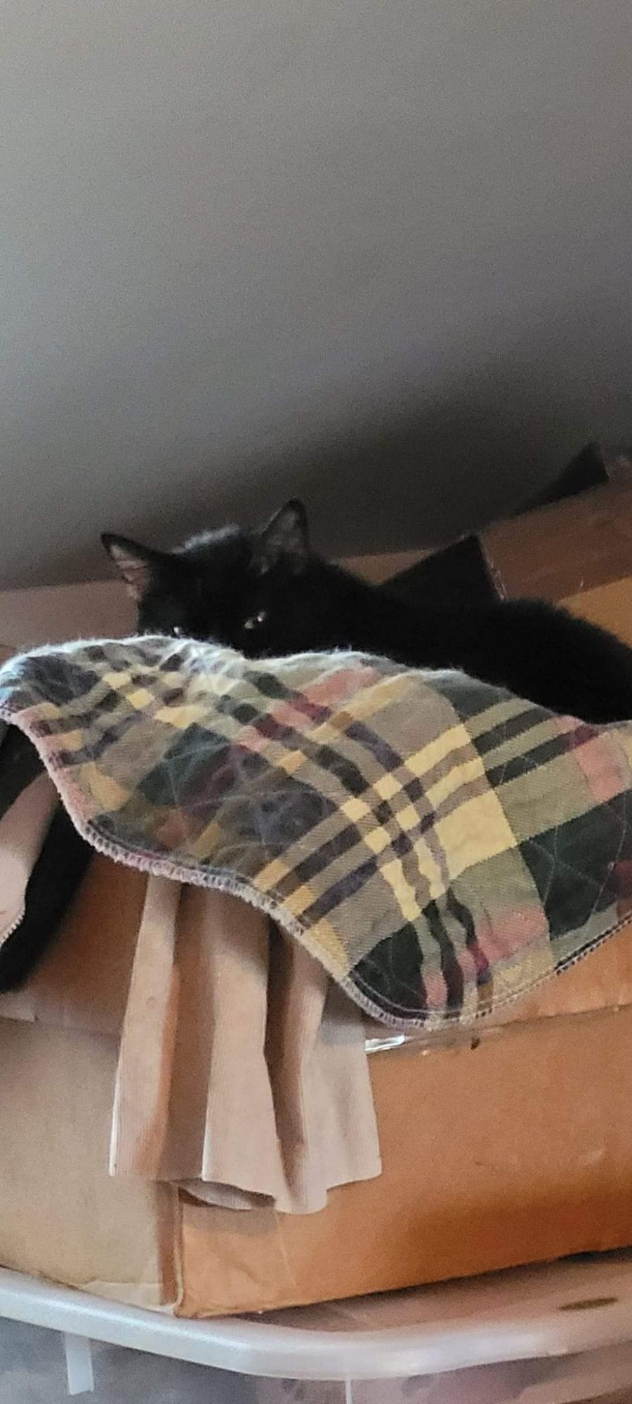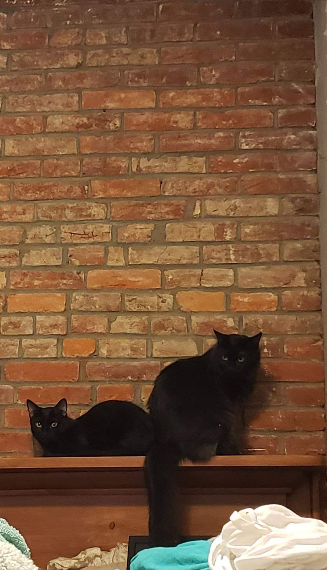 Spencer divides his time between the attic and my bedroom. He sleeps on the bed and in the tunnel. He comes out daily to visit me. If Kinzua is around. Spencer is glued to his side.