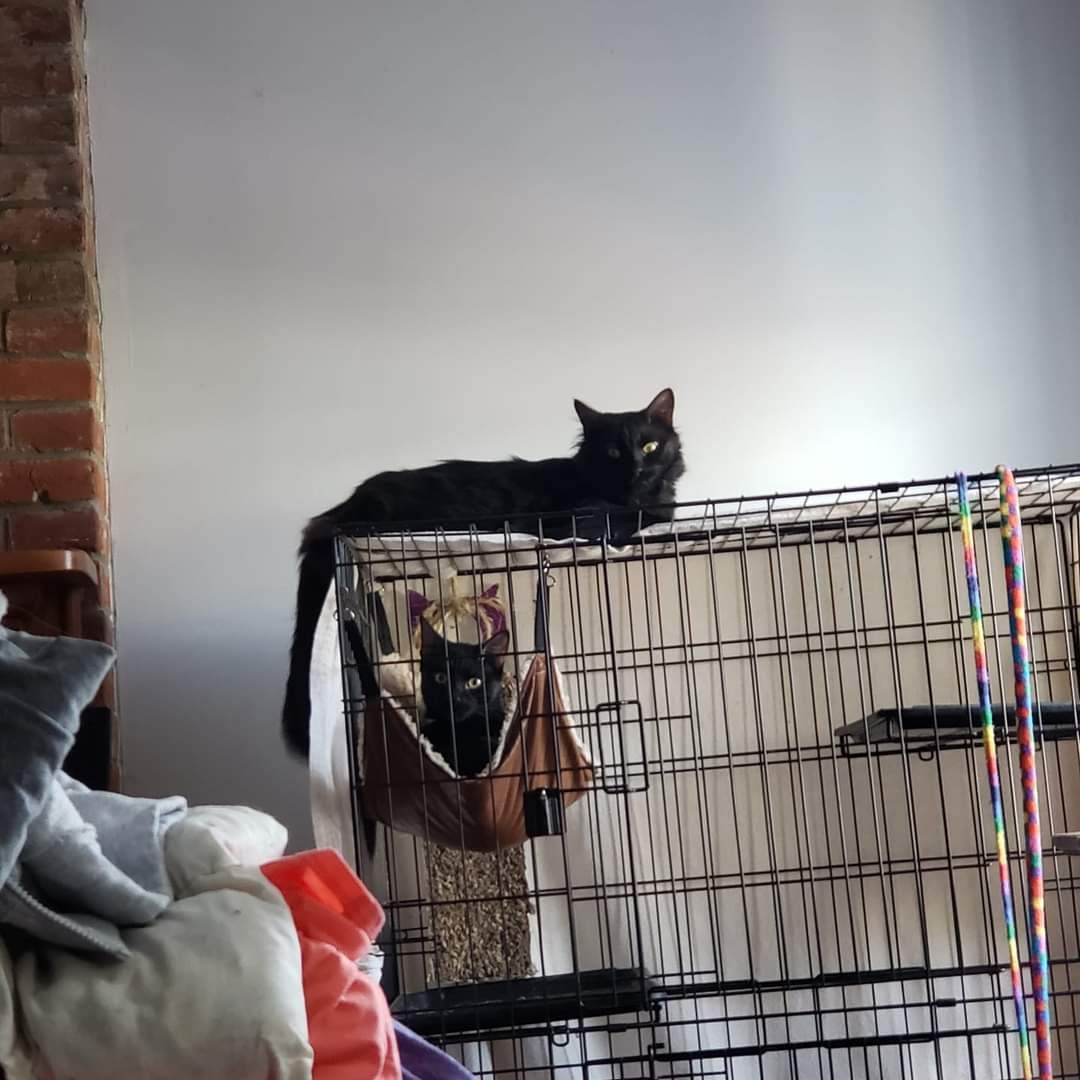 All he wanted was to be back in our room with his window perch and his BFF Kinzua. Eventually, he fled to the attic.