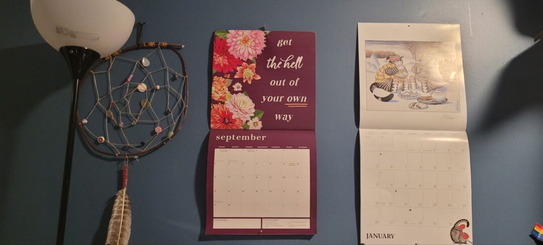 My friend recently bought me a 2025 cat calendar to remind me to look ahead with anticipation. I hung it next to my current year’s calendar near my bed.