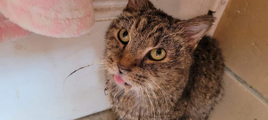 That was September 6. She was too frail for a bath. We fed her, gave her attention, and searched for a rescue.