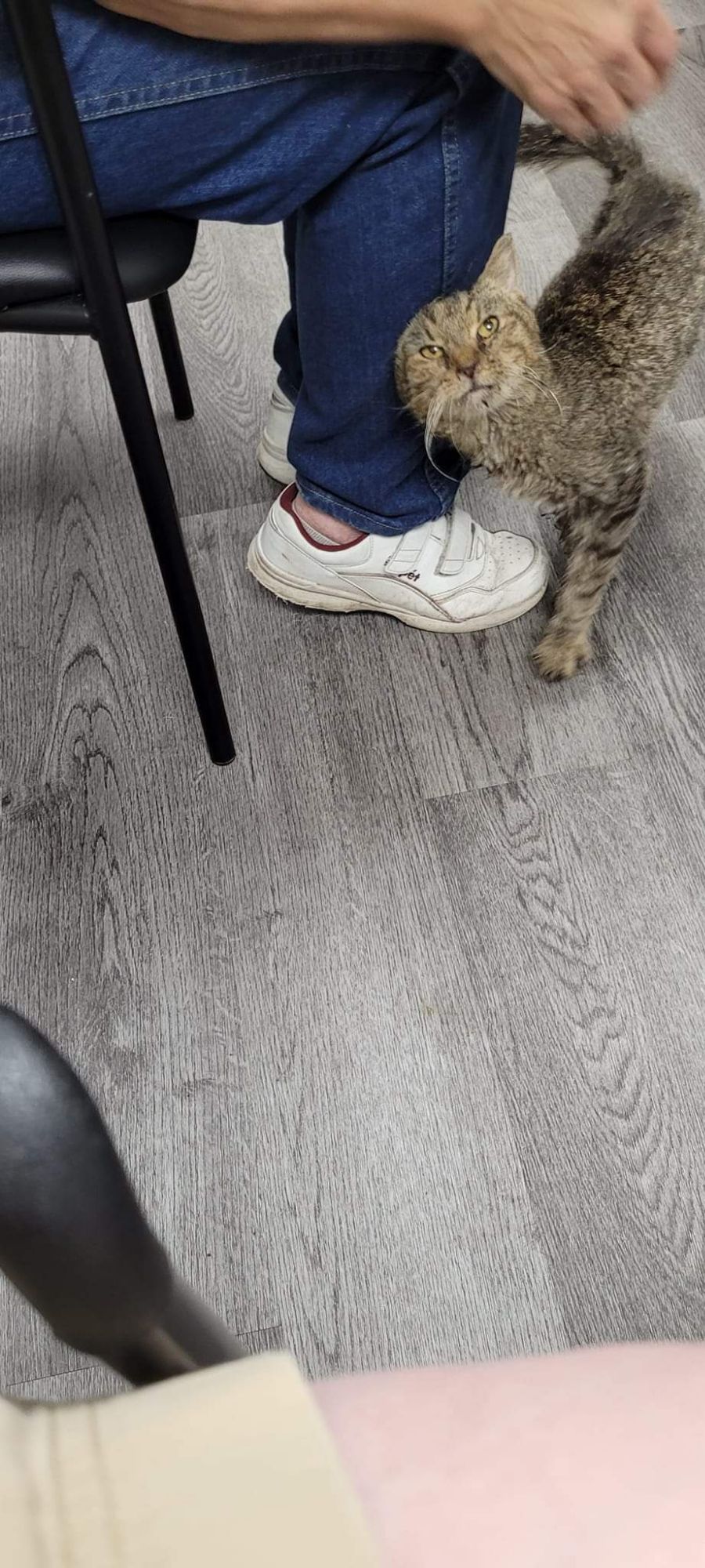 But she’s gaining weight. She loves Churu. She’s still mostly isolated until her healing is complete, but she has met Pretty Boy, resident cat.
