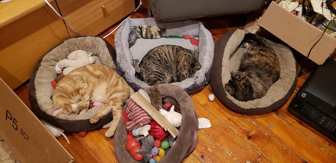 Everything was gifted to us. Now it is also a treatise on religion and gender identity and children. If you have anything to contribute, please do. I have a battery powered tree to put up. More cats, a donkey, a praying Santa? More solar or battery lights? Presents? Cat food? Pride ornaments? Feel free to make offerings.