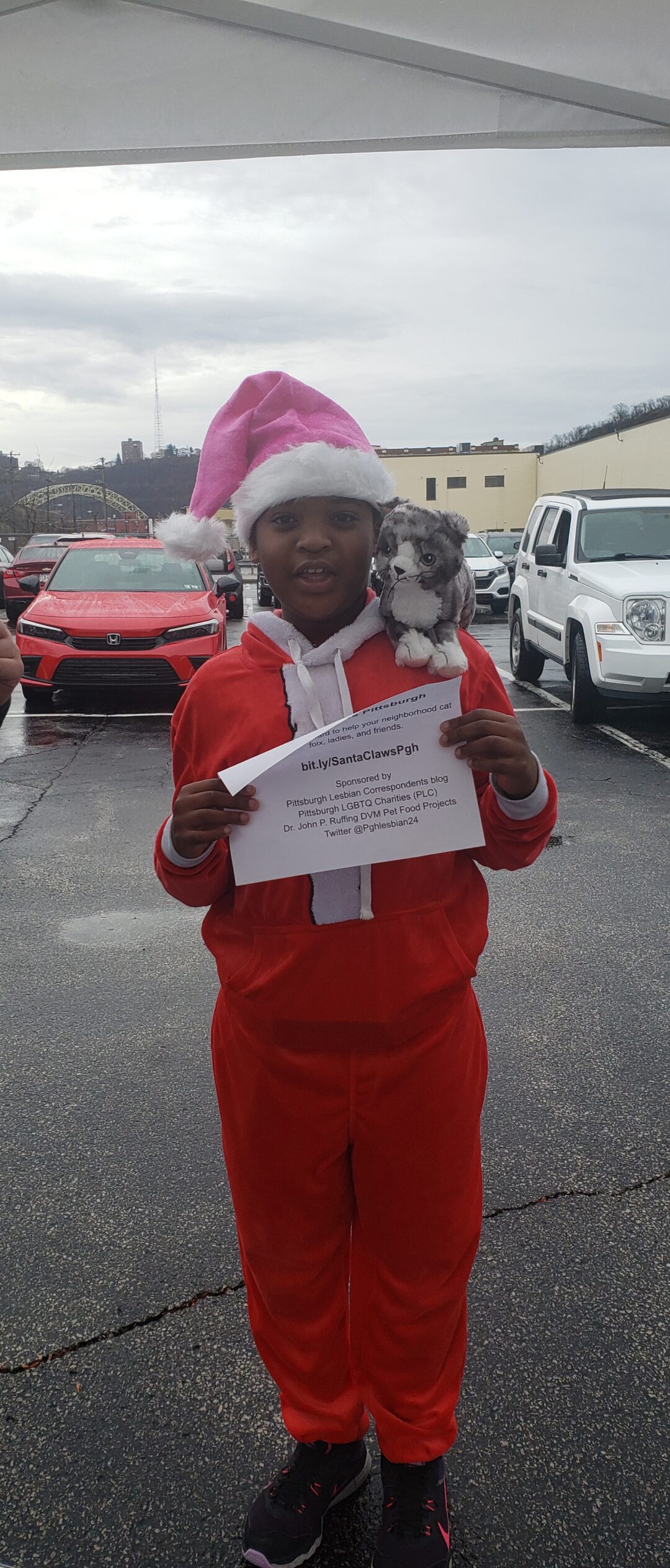 Today, I put on the lights. Tree lights are my favorite thing. I could sit in the dark and watch them twinkle for hours. Ornaments are a challenge given the circumstances so I hung some stockings with care on the tree, topped it with a pink Santa hat, and called it a day.