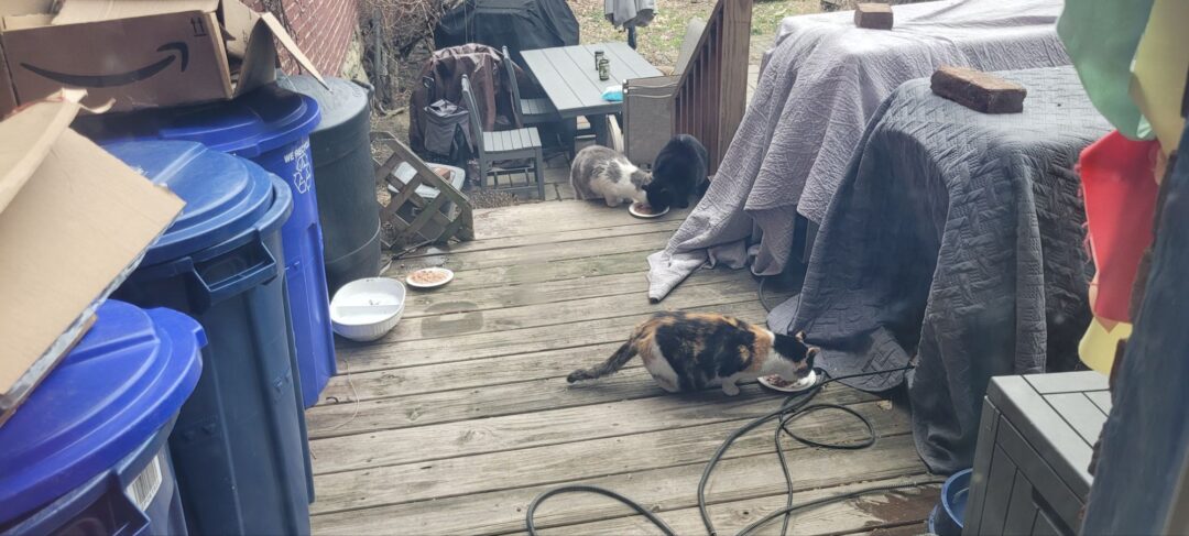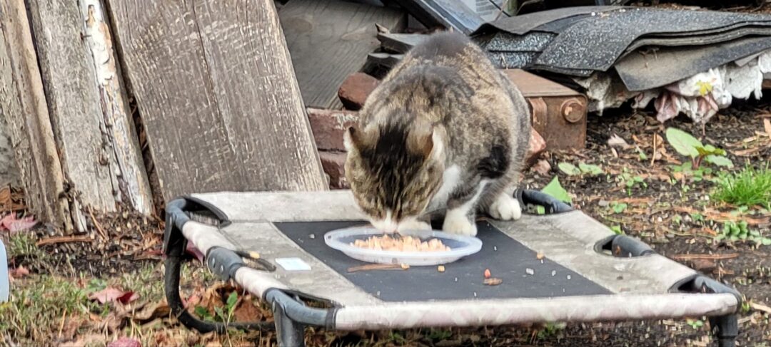 This also has a positive impact on the environment. We reduce waste. We take care of homeless domestic animals who are then not forced to forage. We also reduce future generations of homeless domestic animals by spaying/neutering them. Cat folx will put a reusable dish (like a takeaway clamshell) through many uses until it is ready to be recycled. Or put to another use. TNR’d cats are less destructive to wildlife. Most of us work with wildlife rescuers to help the groundhogs, raccoons, possum, etc.