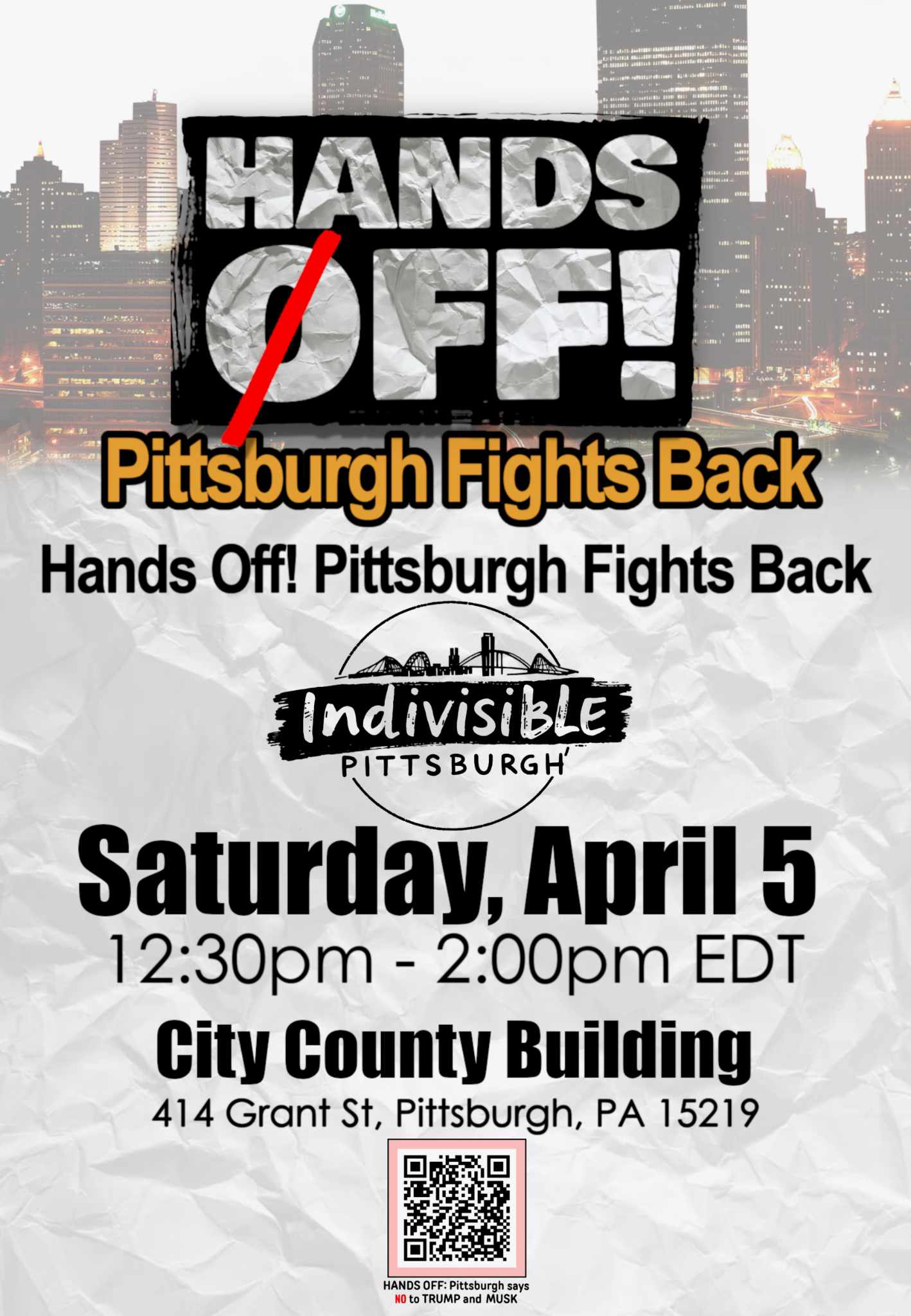 Pittsburgh is one of hundreds of communities participating in the Hands Off! rallies this Saturday. Read on for more details and visit this site for details on nationwide efforts. My crew will be there handing out Protect Trans Kids stickers – look for our tote bags! Time Saturday, April 5 12:30 – 2pm EDT Location … Continue reading Hands Off! Pittsburgh Joins National Resistance To Trump and Musk on Saturday, April 5, 2023 in Downtown