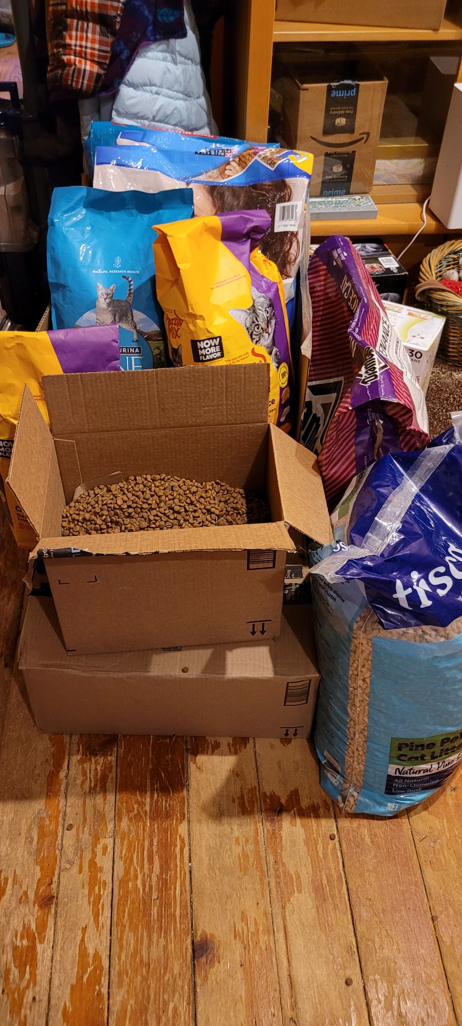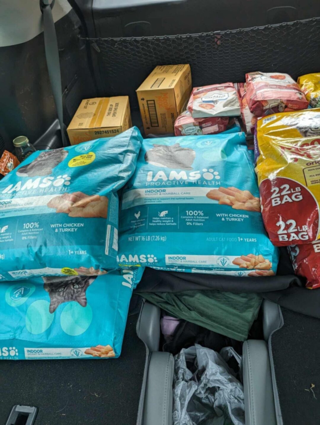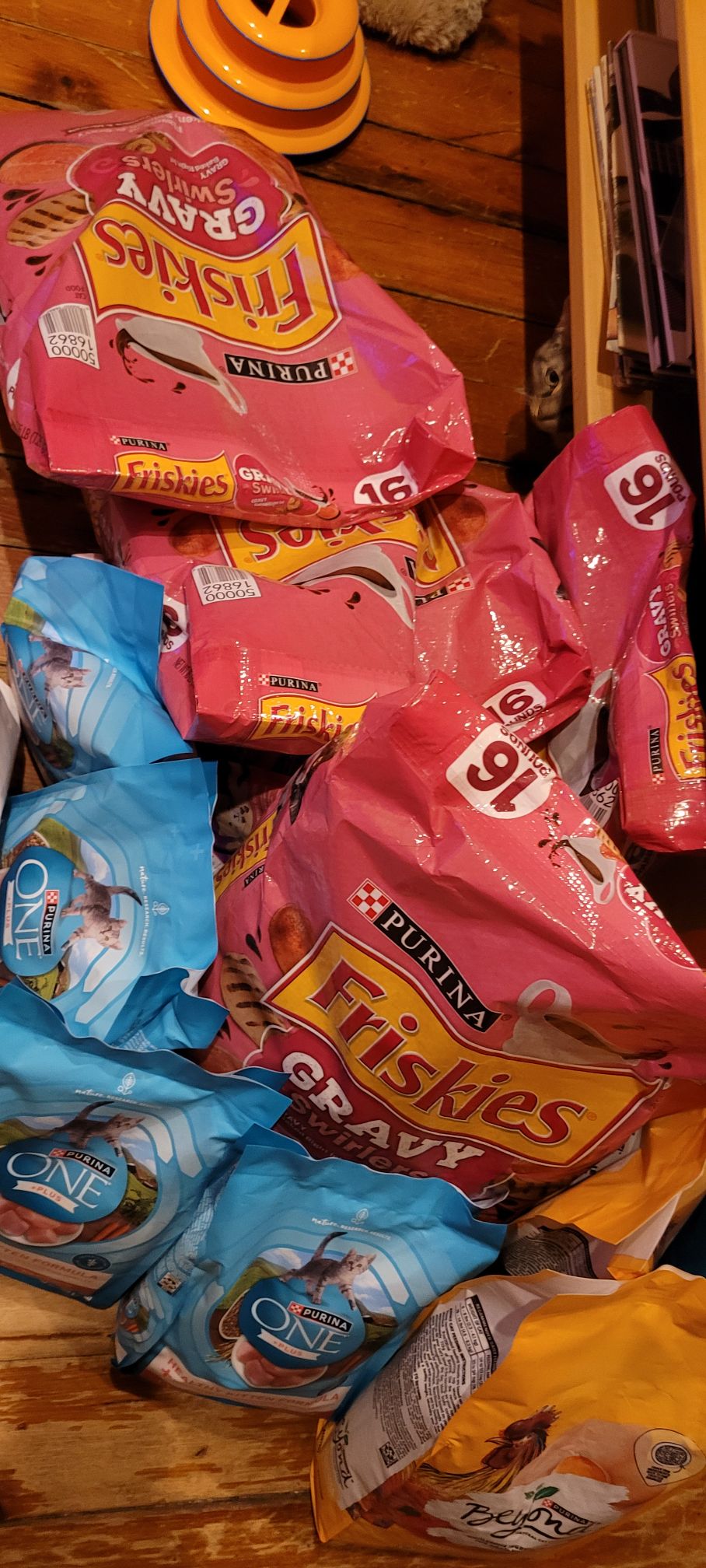 - Dry cat food in 3-5 lb or other small bags (Need extra 120 lbs per month)
