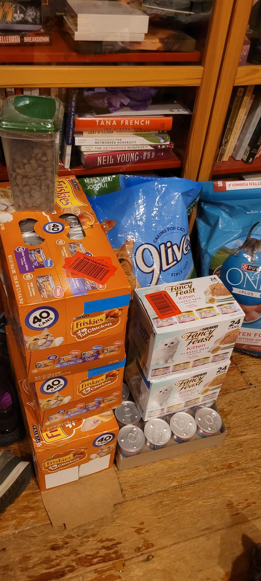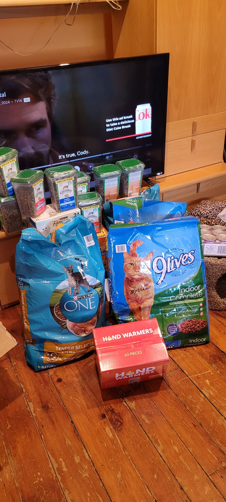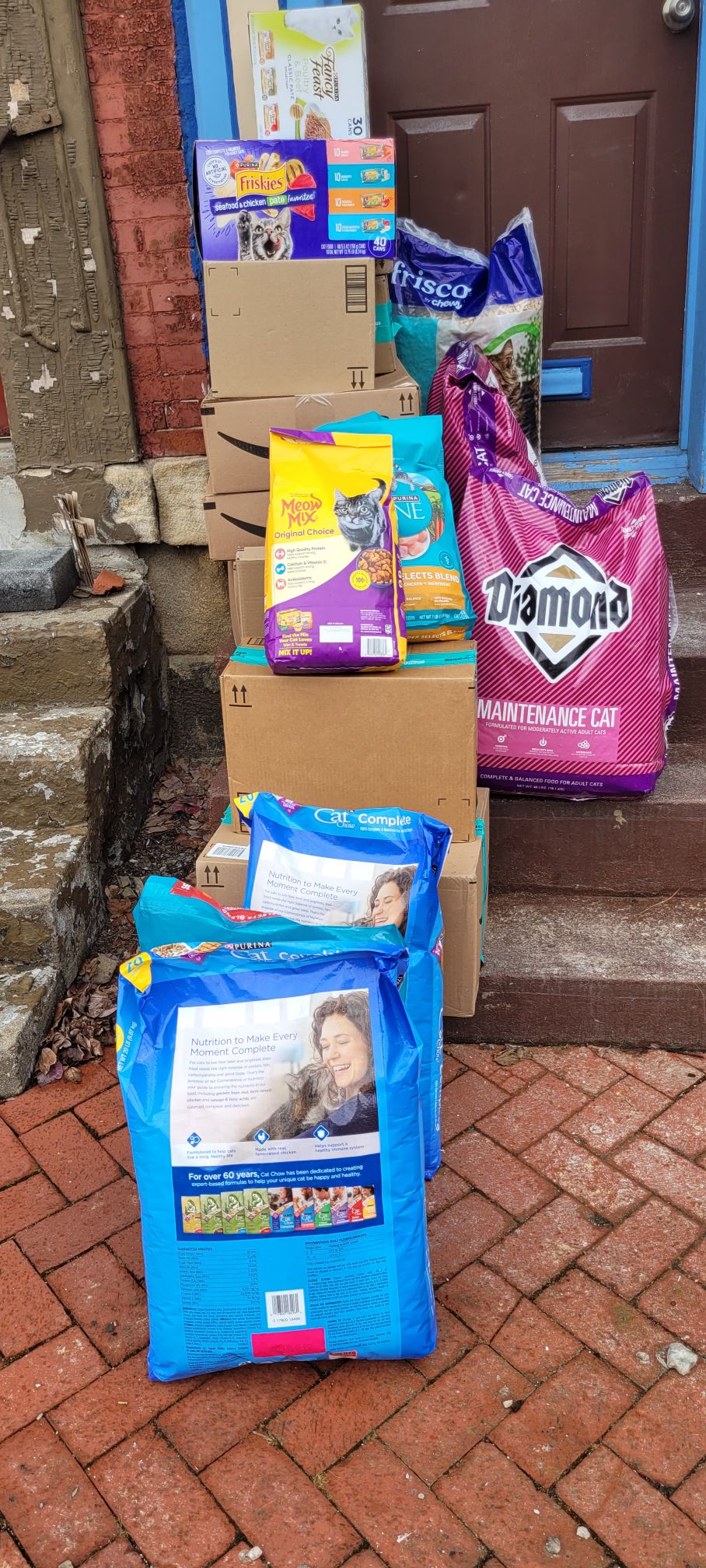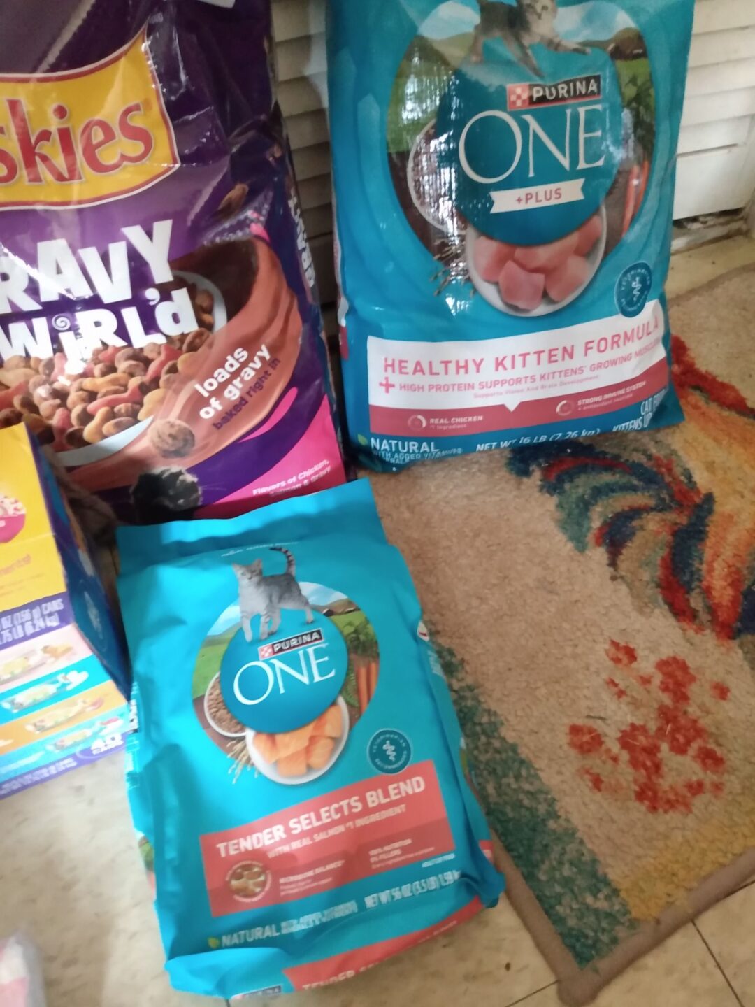 - Dry cat food in 3-5 lb or other small bags (Need extra 120 lbs per month)