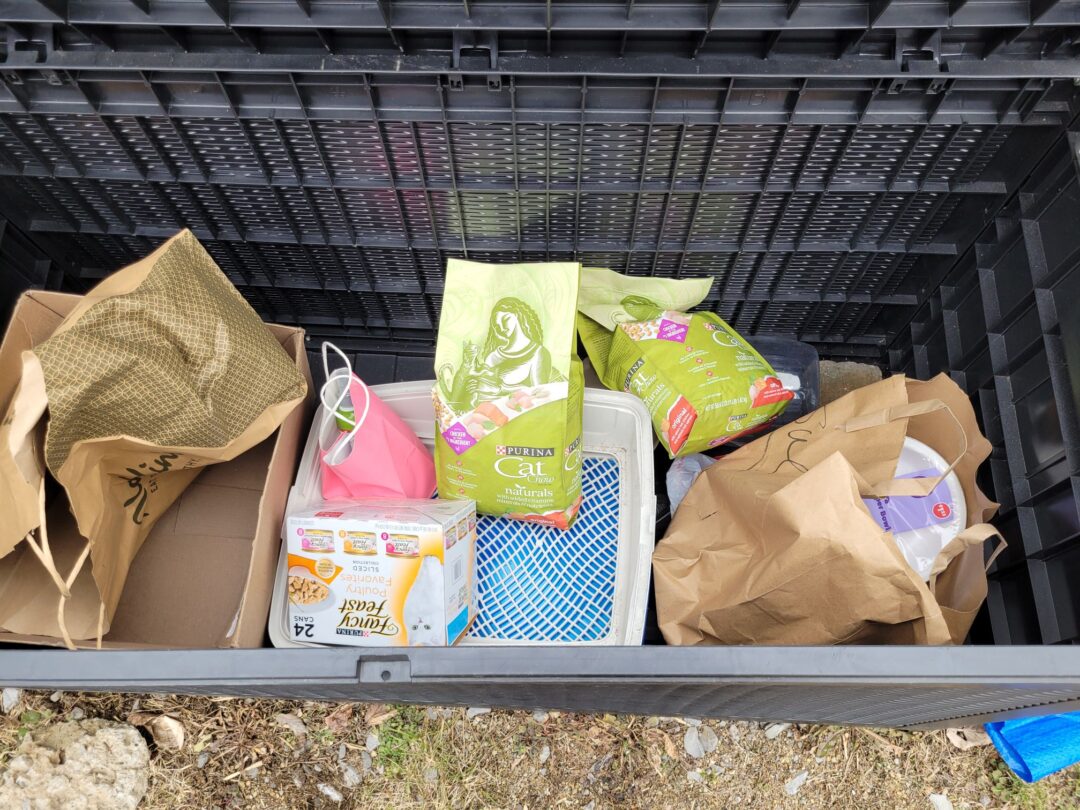As usual we need donations of pet food. We will not be distributing canned food during the hot months (June-Sept) because the temperatures in the distribution bins are pretty intense. This is necessary, but it does cut back on the distributions. Increasing our supply of dry cat food is important.