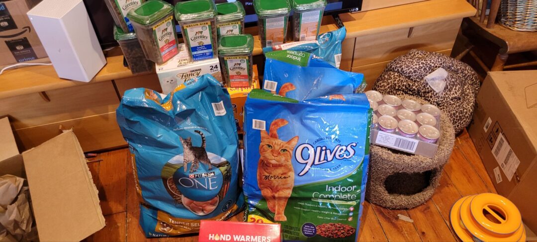We can typically rehome most gently used cat items. A few things we cannot accept are used litter pans, pillows, comforters, and anything that hasn’t been laundered. We just immediately put those items in the trash so it would be best if you did that yourself.