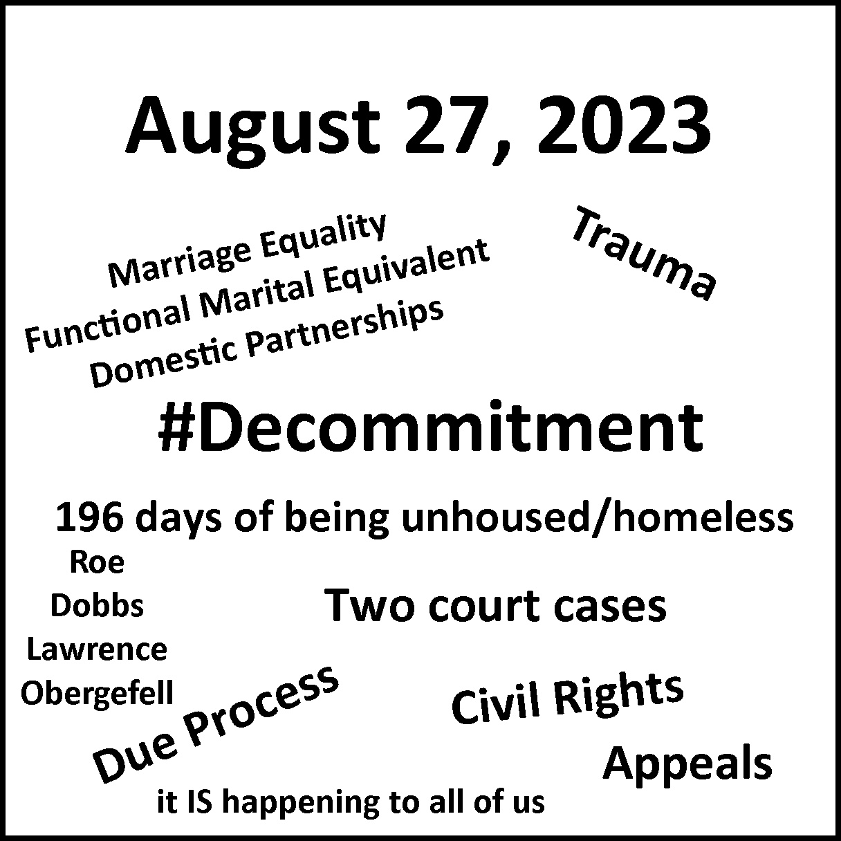 It has been almost two years since the event I now refer to as the ‘Decommitment’ hit its full stride and while calm right now, things are still roiling under the surface. You can read the backstory here including many updates. And it has been verified by GoFundMe – they’ve been so helpful. Here’s the … Continue reading I need your help funding my two ongoing legal battles