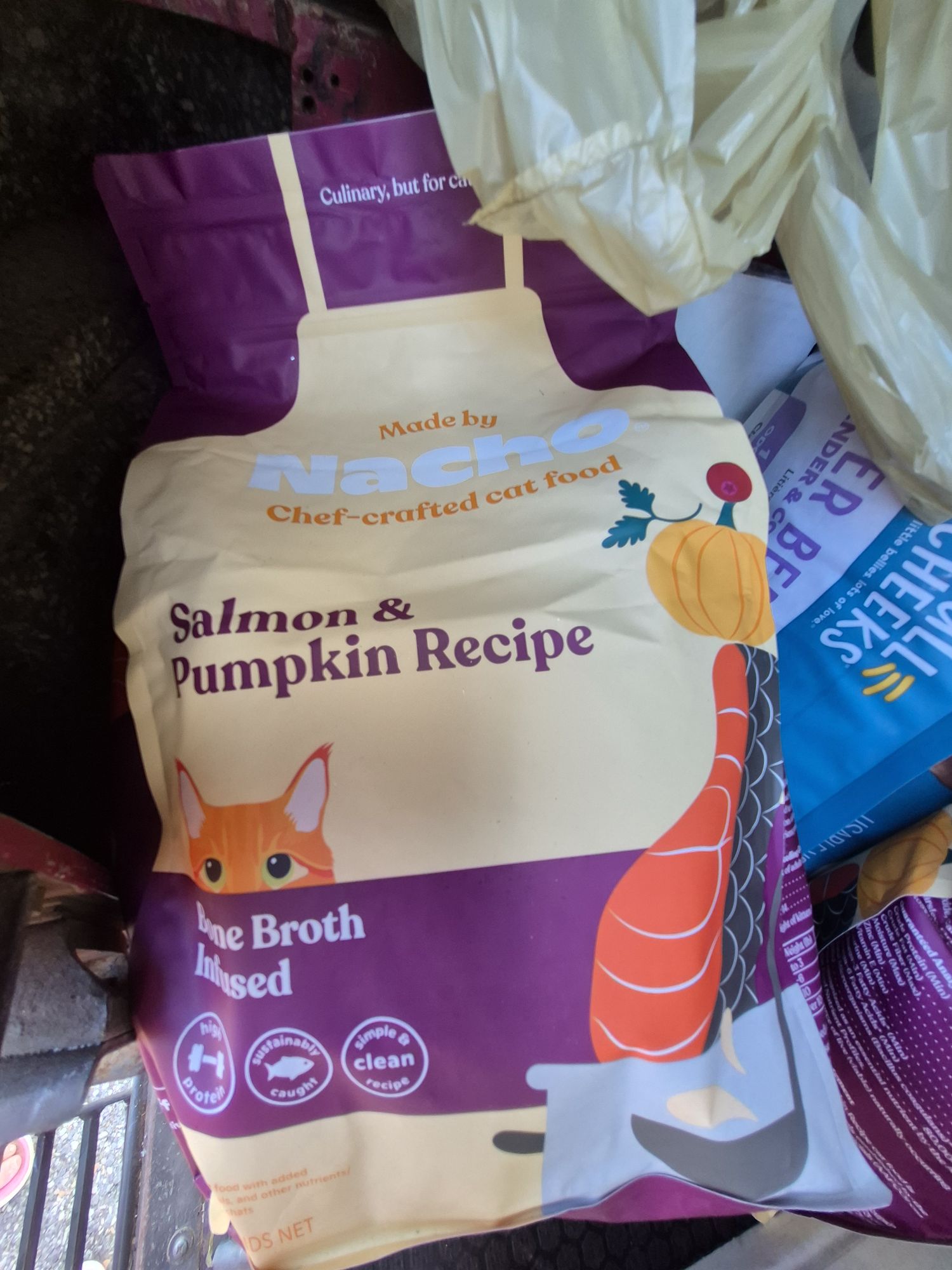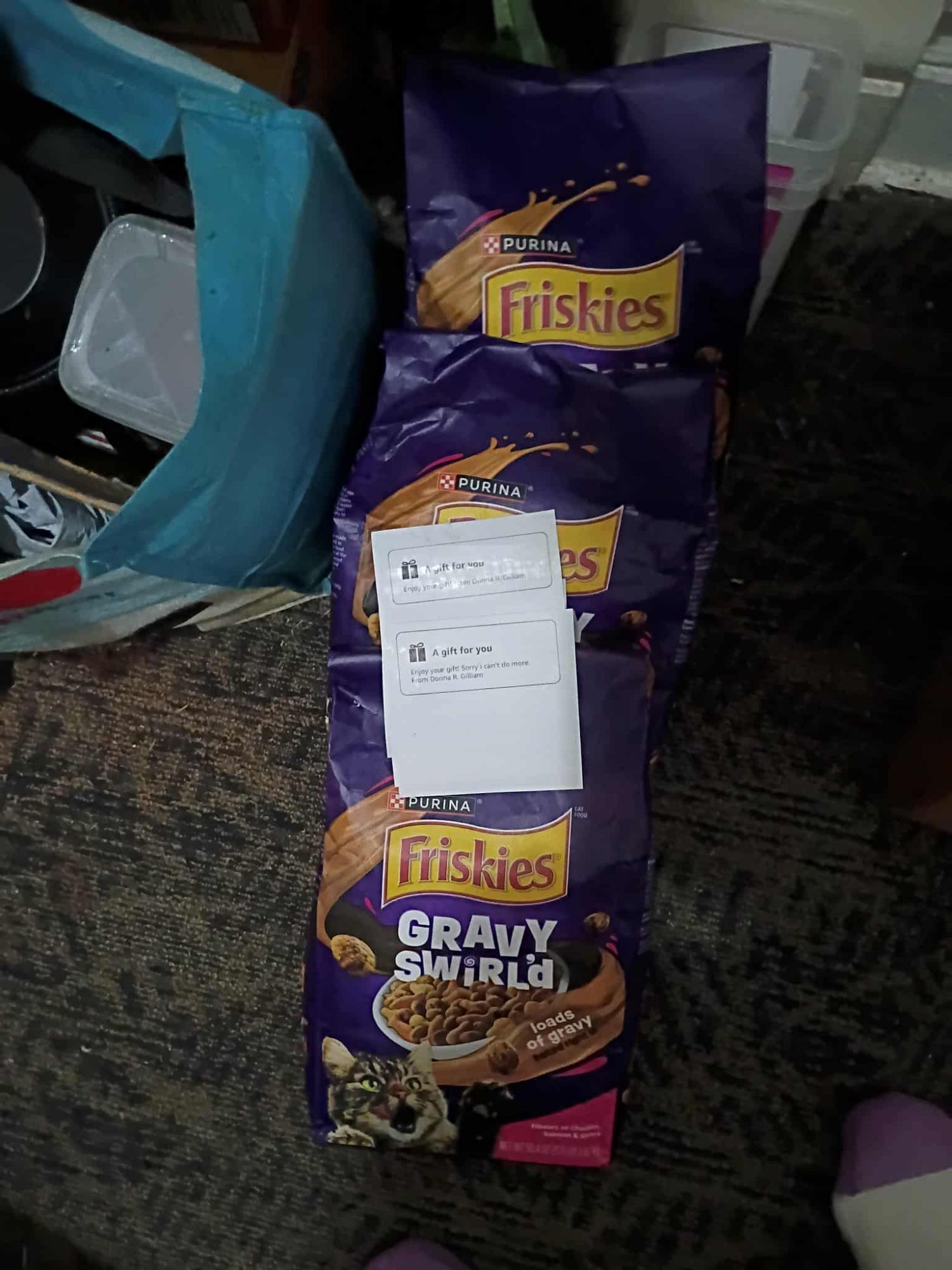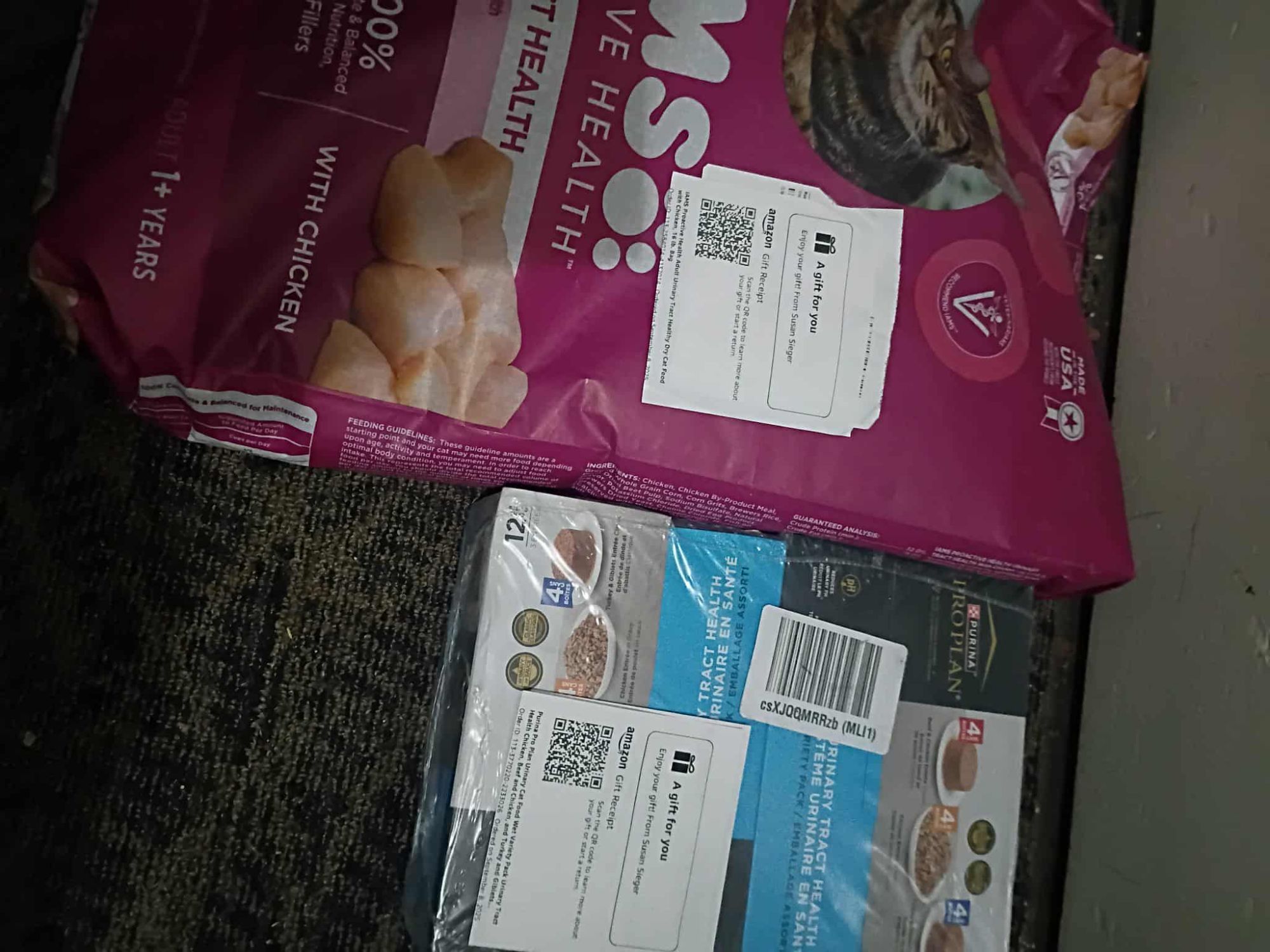 We also received about 60 cans of wet food (see!)