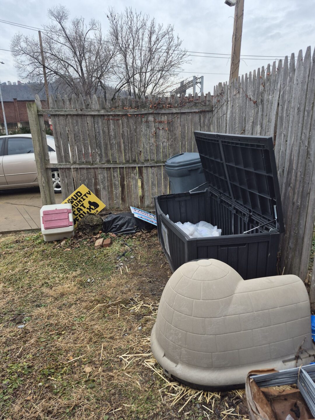 This is a disappointing update to share – some unknown person has stolen several items from the Dr. John P. Ruffing VMD Pet Food Pantry. Heated outdoor items critical for feral and homeless cats. We’ve had items donated that were assigned to our participants and caretakers. They were labeled and then they disappeared.