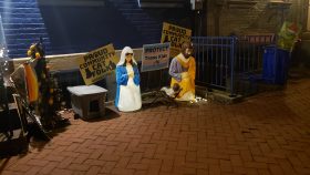 Or Jesus, Cats, and Trans Kids My neighborhood of Manchester on Pittsburgh’s Northside is having a holiday decorating contest. We have a lovely row house, built in 1872, but no outdoor electrical outlets so our decorating has always been limited. Putting things inside the windows is risky business with cats. And the windows are tall […]