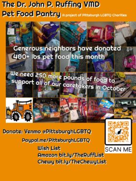 Dr. John P. Ruffing VMD Pet Food Pantry Supports 70+ Caretakers and Households Earlier this month, we informed you that the Dr. John P. Ruffing VMD Pet Food Pantry was almost out of supplies for our 70+ caretakers and households. We had to cancel our September distribution. You came through and donated over 400 pounds […]
