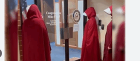 Women Dressed as Handmaids Silently Follow GOP Congressman