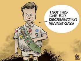 Here’s a little Pittsburgh angle on the Boy Scout story. Tribune Review editorial cartoonist Randy Bish was a finalist in the Golden Quill awards for his work on the Boy Scouts anti-gay stance. Here are two fine examples of his work. I really like the first cartoon – it captures the truth that the Boy […]